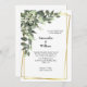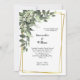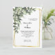 Un precioso marco dorado con vegetación y flores blancas en esta invitación a la boda. Personalice todos los campos para convertirlos en suyos.