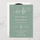 Esta invitación presenta una caligrafía elegante "lo hacemos" y una tipografía simple sans serif con una foto en forma de arco y código QR en un fondo verde sabio. La sencillez y el diseño limpio de esta invitación funcionan bien con todos los temas bodas y sin duda una gran adición a su boda. Intenta ponerte verde con esta moderna invitación ecológica en directo reduciendo el número de tarjetas de detalles y de confirmación. Simplemente agregue tu propio código QR al reverso de la invitación para que tus invitados se presenten a RSVP y descubra más información sobre tu boda. Personalizar los nombres y la redacción en unos pocos pasos fáciles, y personaliza la tarjeta de invitación con tu foto de la pareja feliz para darle un toque único y personal. Nota: La elegante caligrafía de la redacción "We Do", "Dinner and Dancing to follow" y la expresión "Detalles + rsvp" no se puede editar, eliminar ni mover los dibujos gráficos ni otros elementos gráficos. Están arreglados. Si necesita cambiar el color, puede personalizar la tarjeta de invitación. Puede personalizar y personalizar la invitación para que se ajuste a sus necesidades de eventos de boda y simplemente haga clic en el personalizar de la invitación. Puede personalizar fácilmente esta invitación con su propio texto y compartirla con sus invitados digitalmente, ya sea a través de texto, correo electrónico o medios sociales. Si lo prefiere, también puede enviar una versión impresa por correo a sus huéspedes. O, puede hacer ambas cosas: enviar una versión digital y hacer un seguimiento con una copia impresa para un toque personal.