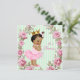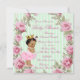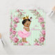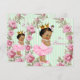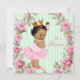 Invitación de baby shower rosa y verde con adorable princesa étnica afroamericana que lleva un tutú y collar de perlas sobre un bonito rosa rosa y fondo verde menta. Puede personalizar esta elegante invitación de baby shower rosa y verde con los detalles de su evento en el estilo de letra, color de letra y redacción de su elección.