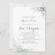 Esta minimalista invitación al eucalipto bat mitzvah es perfecta para una mitzvah rústica de murciélago. El diseño presenta unas elegantes hojas de eucalipto verde acuarela.
