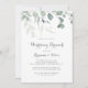 Esta minimalista invitación al brunch boda de eucalipto es perfecta para un evento rústico. El diseño presenta unas elegantes hojas de eucalipto verde acuarela.