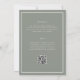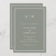 Estas elegantes y modernas invitaciones a una boda presentan un sencillo diseño de texto minimalista en blanco y verde sabio, con un marco clásico en la frontera. Añada sus iniciales o su monograma para hacerlas completamente propias. En la parte trasera de las invitaciones hay una sala para los detalles de tu boda (información de recepción, alojamiento de hotel, etc.) y rsvp (incluido un escaneado código QR para que los clientes puedan responder en línea a través de tu sitio web boda).