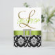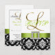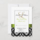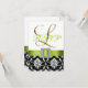Invitación Verde Negro Blanco Damask Inicial L RSVP de Boda