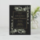 Con delicadas hojas de color agua verde, esta invitación a la boda todo en uno en color negro y oro de moda se puede personalizar con toda la información especial del día de la boda al revés, incluyendo su RSVP, alojamiento y el código QR del sitio web boda. Diseñado por Thisisnotme©