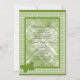 Invitación a una fiesta en el maletero de la universidad con una mariposa verde sobre un fondo con motivos verdes y blancos.
