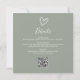 Una invitación moderna minimalista para una fiesta de bebé todo en uno con un corazón dibujado a mano, código QR del registro y detalles del evento con tipografía elegante sobre un fondo verde sage. Diseñado por Thisisnotme©