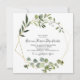 Este verde tropical deja la invitación a la boda española cuadrada es perfecta para un boda moderno. El diseño está decorado con hermosas hojas verdes pintadas a mano, adornando un marco geométrico dorado.