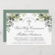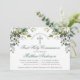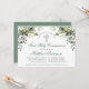 La moderna y elegante invitación a la Primera Santa Comunión incluye hojas de eucalipto acuarela y otros hermosos follajes de vegetación botánica. Sage Green Back. Cruz de Plata.