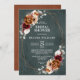 Elegante Borgoña Rojo, Terracotta , Invitación a la boda Naranja de temática floral con elegante ramo de Marsala, rosas de color terracota peonías y hojas de eucalipto verde salado. Comuníquese conmigo para obtener ayuda sobre la personalización o si necesita cualquier otro producto con este diseño