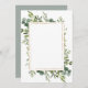 En esta invitación en blanco destacan la vegetación eucalipto pintada, las hojas verdes y un marco rectangular de oro falso.