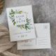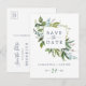 Esta vegetación veraniega, salvo la postal del anuncio de fecha, es perfecta para un elegante boda de verano. El diseño botánico presenta una disposición exuberante de eucalipto de acuarela pintada, vegetación y hojas verdes con sutiles brotes de flores rosa rubor.