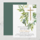 Invitación Verdor Floral Cruz Botánica Elegante Bautismo