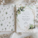 Esta elegante invitación a la boda combina el encanto natural de la vegetación acuática con el sofisticado brillo de falsos acentos dorados. Una disposición geométrica da un toque moderno a las hojas de eucalipto orgánico, que se exhiben en diferentes tonalidades de jade, marinero y verde cazador. La invitación está enmarcada con delicadas mantas de oro y ramas, lo que añade un toque de lujo. Perfecto para una moda y un boda contemporáneo, esta invitación encantará a sus huéspedes con su combinación única de belleza botánica clásica y elementos de diseño moderno.