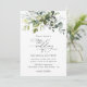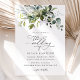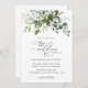 Invite a los amigos y a la familia con estilo y establezca el tono para su día especial con esta encantadora invitación a la boda. El diseño presenta hojas de eucalipto y vegetación sobre fondo blanco.
