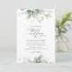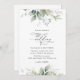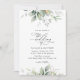 Invite a los amigos y a la familia con estilo y establezca el tono para su día especial con esta encantadora invitación a la boda. El diseño presenta hojas de eucalipto y vegetación sobre fondo blanco.