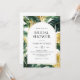 Fijar el tono para una celebración de escapada tropical con esta invitación a la ducha de flores tropical con hojas de vegetación tropical, con hojas de palma de color verde exuberante enmarcadas elegantemente en oro. El sofisticado diseño de la playa aporta un toque de elegancia y encanto de la isla, lo que lo convierte en el lugar perfecto para un destino o una ducha de novias al aire libre. Si necesitas ayuda para personalizar tu invitación, por favor hazme saber - ¡me encantaría ayudarte!