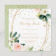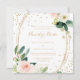 Este verde y geométrico dorado, elegante invitación a la boda española, es perfecto para un boda rústico. El diseño se caracteriza por unos rosas pintados a mano, blancos, rosas y ruidosos, con un toque de vegetación, unos marcos geométricos dorados y una belleza artística inspiradora.