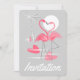 Invitación vertical de flamencos enamorados