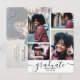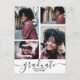 Añade tus 4 fotos favoritas al frente y una al fondo de estas invitaciones a la fiesta de graduación con el título, el nombre de tu escuela y la clase con letras de moda. Añada los detalles de su fiesta al dorso. Más diseños y colores hechos en nuestra tienda.