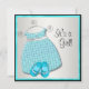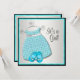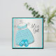 Adorable vestido azul verde azulado de bebé y zapatos invitaciones de ducha de bebé azul verde azulado.