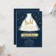 Invitación Vestido Boda con ducha de novia azul y dorada