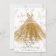 Invitación Vestido de baile de mariposa brillo dorado fiesta