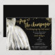 Invitación Vestido de champán y ducha de novia con brillo dor