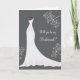 Vestido de novia blanco sobre fondo negro y remolinos tarjeta de saludo de petición de dama de honor. Puede ajustar el texto según sus necesidades. Algunas imágenes son del diseño de Riefka en www.mygrafico.com