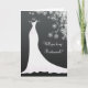 Vestido de novia blanco sobre fondo negro y patrón floral de encaje tarjeta de solicitud de dama de honor. Puede ajustar el texto según sus necesidades. Algunas imágenes son de Riefka design en www.mygrafico.com