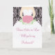 Vestido de novia blanco y flores sobre fondo de damasco Tarjeta de solicitud de dama de honor. Puede ajustar el texto según sus necesidades. Hay una tarifa de envío correspondiente.