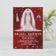 Invitación de ducha de novia de vestido de novia de diamantes de mármol rojo