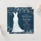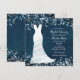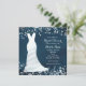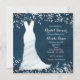 Invitaciones de despedida de soltera con vestido de novia en percha y confeti.