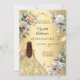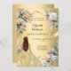 Un falso fondo dorado. Decorada con flores blancas y amarillas y una cinta dorada. Un chica con una tiara y un vestido. Personalice y agregue un nombre y detalles.