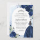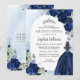 Invitación Vestido de plata azul de la Marina Floral Cumpleañ