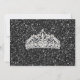 Invitación de Quinceañera con Brillo Negro. Esta hermosa invitación de Quinceañera está creada con un vestido de lentejuelas negras y piedras de imitación que está lleno de glamour y brillo. La parte trasera del diseño presenta brillo falso con una diadema glamurosa de diamantes.