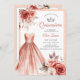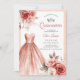 Invitación Vestido de Quinceañera Floral Rosa Dorado con Bril