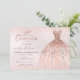 Invitación Vestido de Quinceañera, lentejuelas de oro rosa