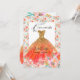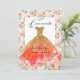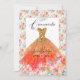 Invitación Vestido de Quinceañera Naranja con Brillo y Flores