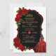 Invitación Vestido elegante Quinceanera Roses rojas negro y o