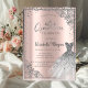 Invitación Vestido plateado Tiara,Diamantes Rosa de oro Quinc