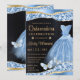 Invitación Vestido Purpurina azul y dorado Quinceanera