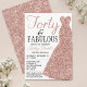 Celebre con estilo con estas elegantes y modernas invitaciones a los cumpleaños 40 de este vestido de purpurina rosa de oro. El diseño es fácil de personalizar y sus huéspedes se sentirán encantados cuando reciban estas elegantes invitaciones.