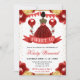 Esta hermosa invitación de Sweet Sixteen presenta a una princesa de piel oscura con un vestido rojo brillante rodeada de rosas, globos y detalles dorados brillantes. La rica paleta roja y la ilustración de princesa de cuento de hadas crean una atmósfera lujosa y mágica, mientras que los acentos florales y brillantes añaden un toque de elegancia. Perfecta para celebrar este hito único en la vida con un ambiente femenino, encantador y bellamente refinado.