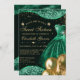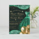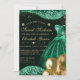 Invitación Vestido verde y globos Purpurina dorado dulce 16