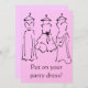 Perfecto para una habitación senior o para cualquier ocasión especial, esta invitación cuenta con 3 elegantes vestidos de baile en perchas esperando que el afortunado chica fiesta elija uno. Hay un vestido de diosa griega, un vestido de cóctel de burbuja y un elegante vestido de Bandage largo. El ejemplo del texto de Prom Senior al revés es por supuesto totalmente personalizable de crear una invitación verdaderamente personal a una celebración única.
