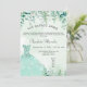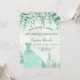 Una invitación de moda para una fiesta de 15 años de Quinceañera, temática forestal encantada. Un fondo de color verde acuático con helechos y eucaliptos, un vestido verde. El nombre está escrito con una escritura de estilo con letras a mano moderna. Personalice y agregue los detalles de su fiesta.