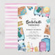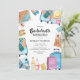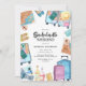 Invitaciones de fiesta de soltera de vacaciones lindas con una selección de artículos de viaje de acuarela, incluyendo maletas, cámara, mapa, etc., y una plantilla de fiesta de soltera elegante que es fácil de personalizar.