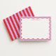 A bold and modern note card featuring a vibrant purple and red color palette with a playful wavy border frame. The crisp white writing space keeps your message clean and easy to read, while the contrasting colors add a fun, energetic touch. Perfect for everyday notes, thank-you cards, or personal correspondence. The striped backer adds extra personality and can be customized to any color—or replaced with a solid background if you prefer a simpler look.