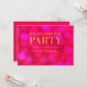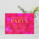 Invitación a una fiesta de soltería de moda con las palabras "Bachelorette Party" en un Relieve metalizado de oro falso contra un vibrante fondo de luces rosadas de fondo de patrón de bokeh. La invitación tiene un fondo rosa oscuro en la parte posterior. Personalice esta invitación con sus detalles reemplazando el texto del marcador de posición. Para obtener más opciones, como cambiar el tipo de letra, el tamaño/color del texto o el espaciado entre letras, haga clic en el botón "Personalizar". *Tenga en cuenta que la marca de agua Zazzle que aparece en la vista previa del zoom NO aparecerá en el producto impreso final. © Rosewood y Citrus