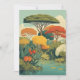 Un exuberante y estilizado paisaje de safari africano con un vívido follaje de rojos, naranjas, amarillos y verdes alrededor de un estanque tranquilo, perfecto para la decoración y los regalos con temática natural.
